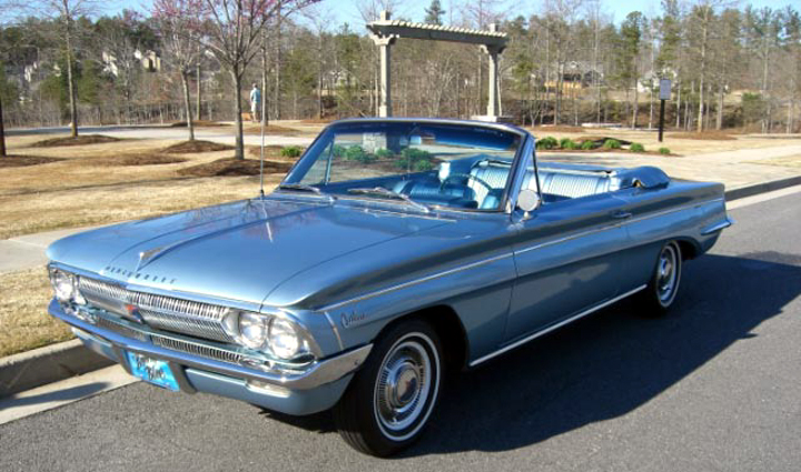 Terry Mell, of Canton, Georgia is the 3rd owner of this Wedgewood Mist '62 F-85 Cutlass convertible. It is equipped with power steering and "3-on-the-tree" synchromesh manual transmission. She is known as "Bonney Blue" and has just under 33,000 original miles. The paint was redone in 1999, and the carpeting has just been replaced. Otherwise, she is completely original, including the convertible top.
